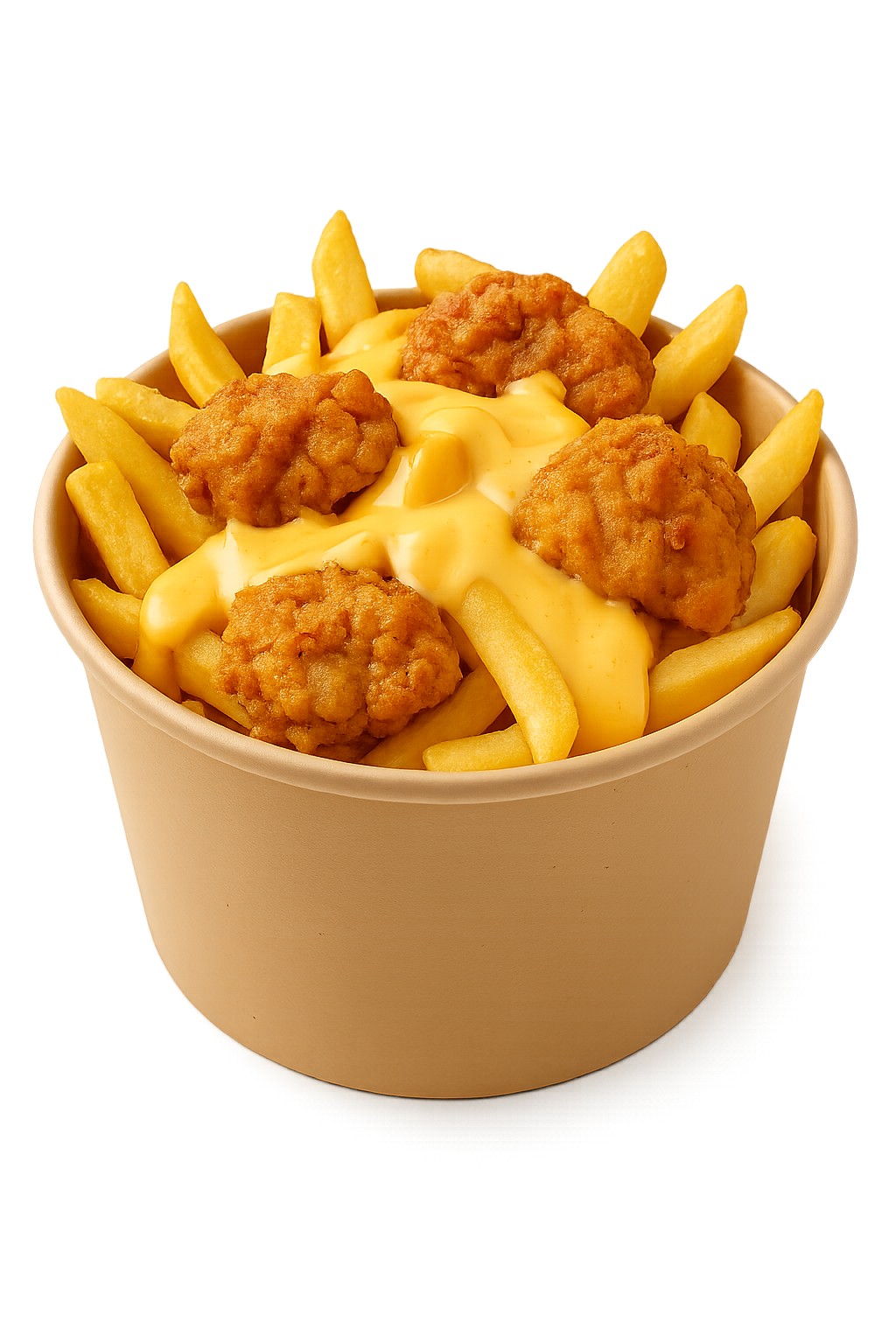 Frites, tenders fromagère, cheddar fondu