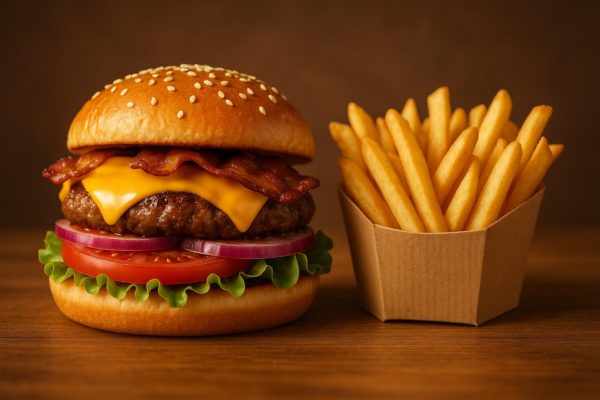 Salade, tomates, 1 steak 90 g, bacon, cheddar