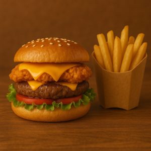 Salade, tomates, 2 steaks 90 g, cheddar