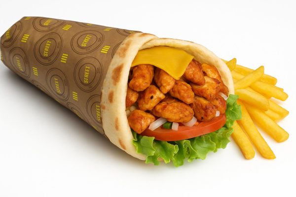 Salade, tomates, oignons, Poulet tandoori, fromage