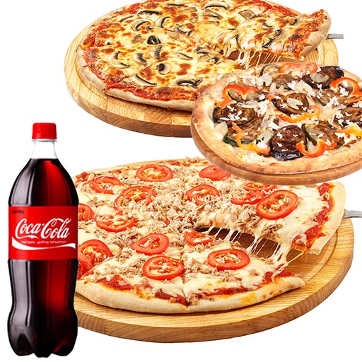 2 pizzas Senior au choix + maxi coca cola