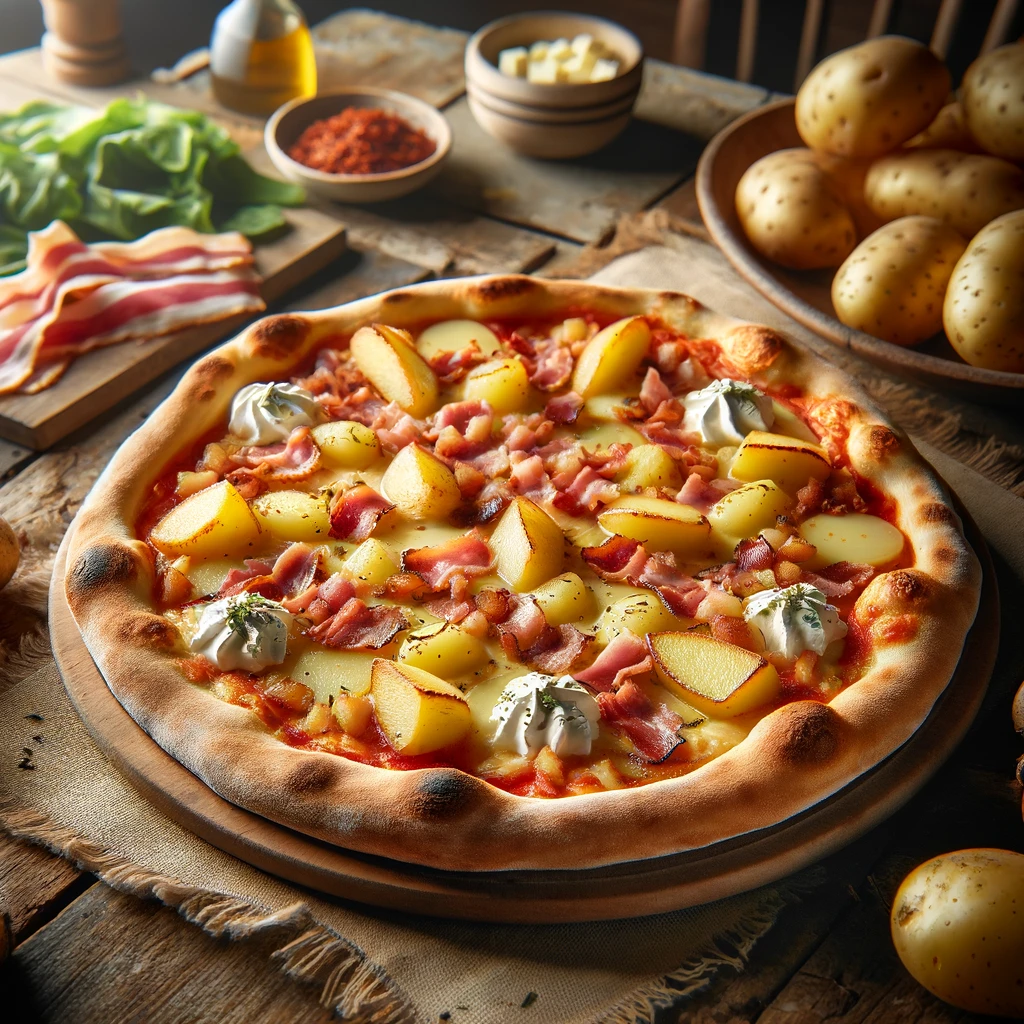 Tomate, fromage, viande hachée, oignons, boursin