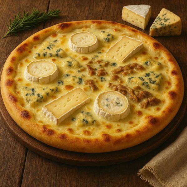 Tomate, fromage, jambon, poivrons, chèvre, oignons