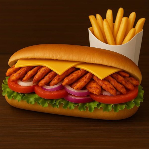 Salade, tomates, oignons, Poulet tandoori, poulet curry, cheddar