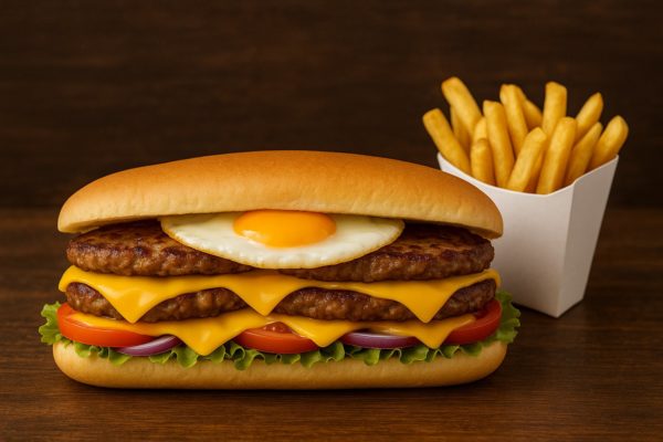 Salade, tomates, oignons, Tranche escalope, œuf, steak